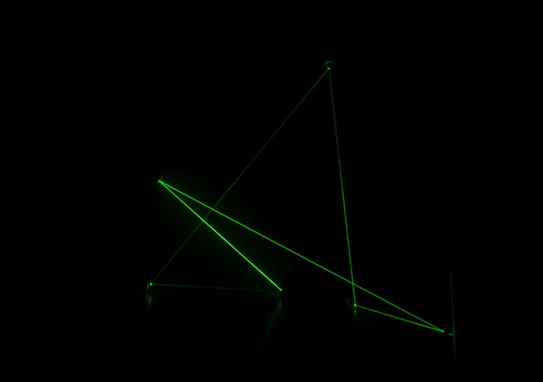 La forma creada con luz, se puede considerar una estructura cerrada como en el ensayo anterior, ya que todos sus vértices están unidos. Pero el paso del visitante de un lado a otro de la formación, se puede realizar sin interferir ninguno de los trazos. De modo que la construcción contiene zonas que facilitan la integración del visitante dentro del perímetro que forman las líneas. El sujeto puede estar envuelto por las líneas pero a su vez el acceso no impide tener que atravesar la luz. De todas formas, los visitantes están libres de poder cruzar también sobre los trazos, ya que no supone ningún esfuerzo físico. Su acción se centra en un proceso mental, más que en un hecho corporal.