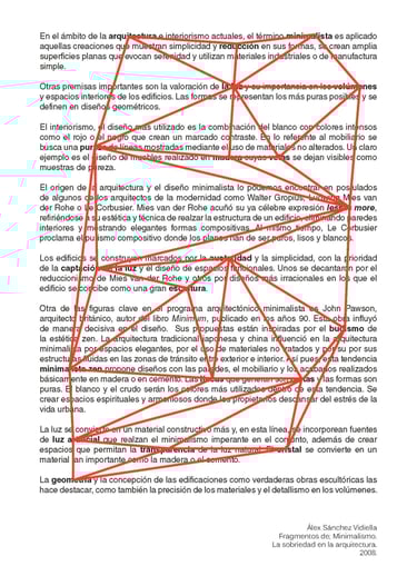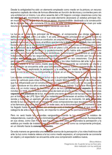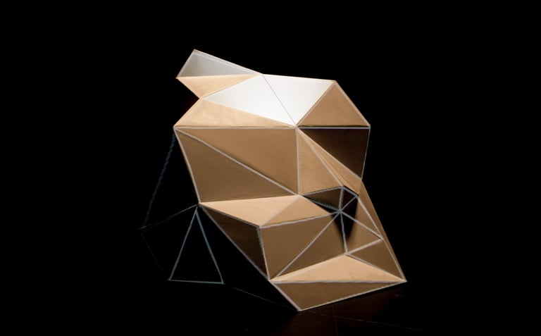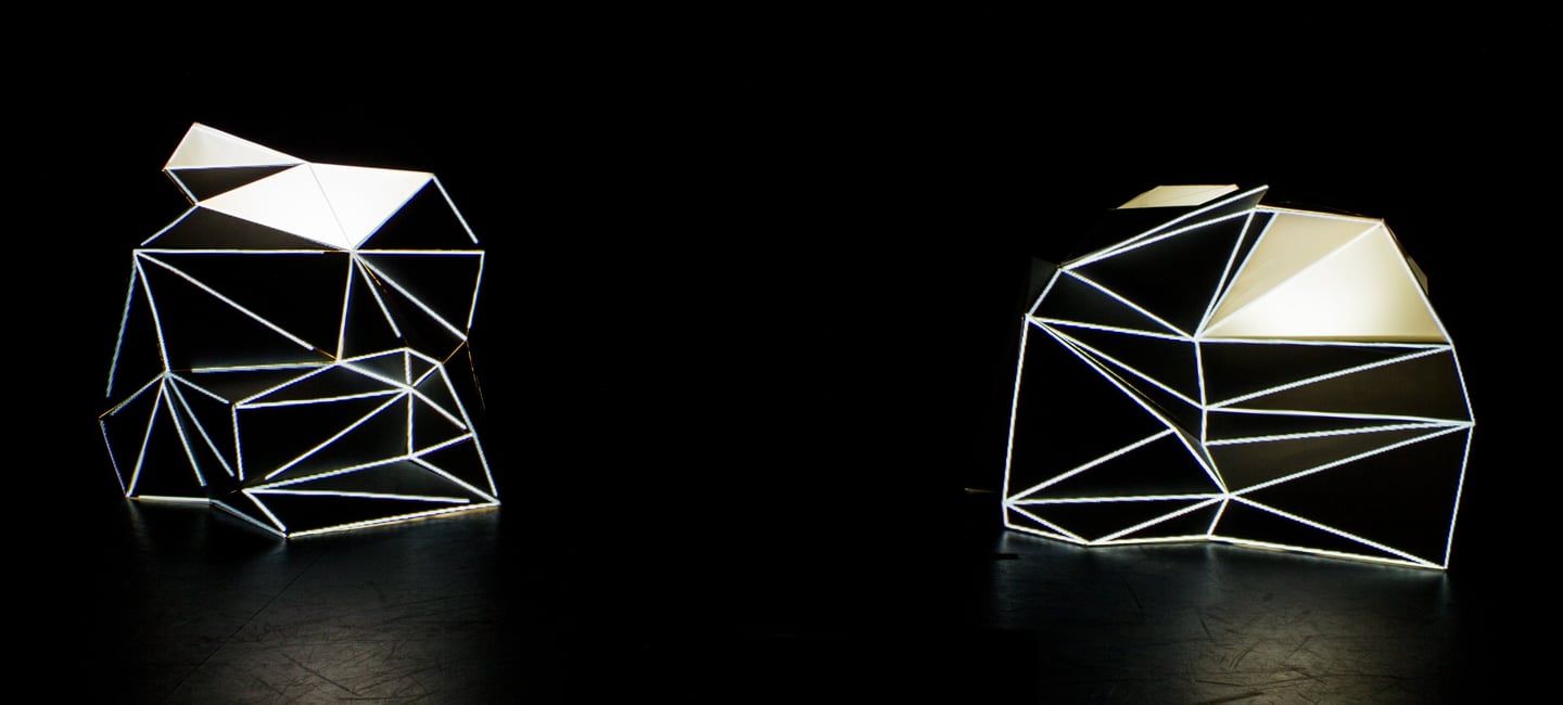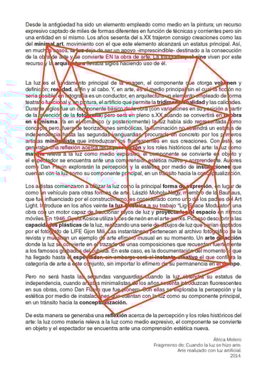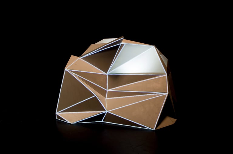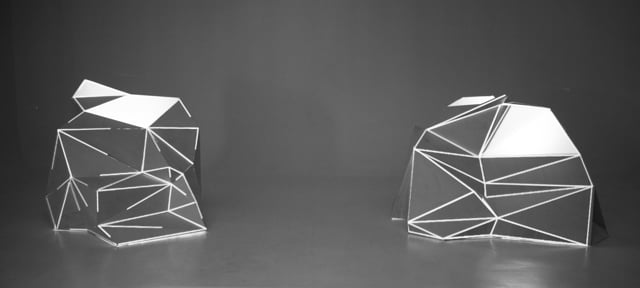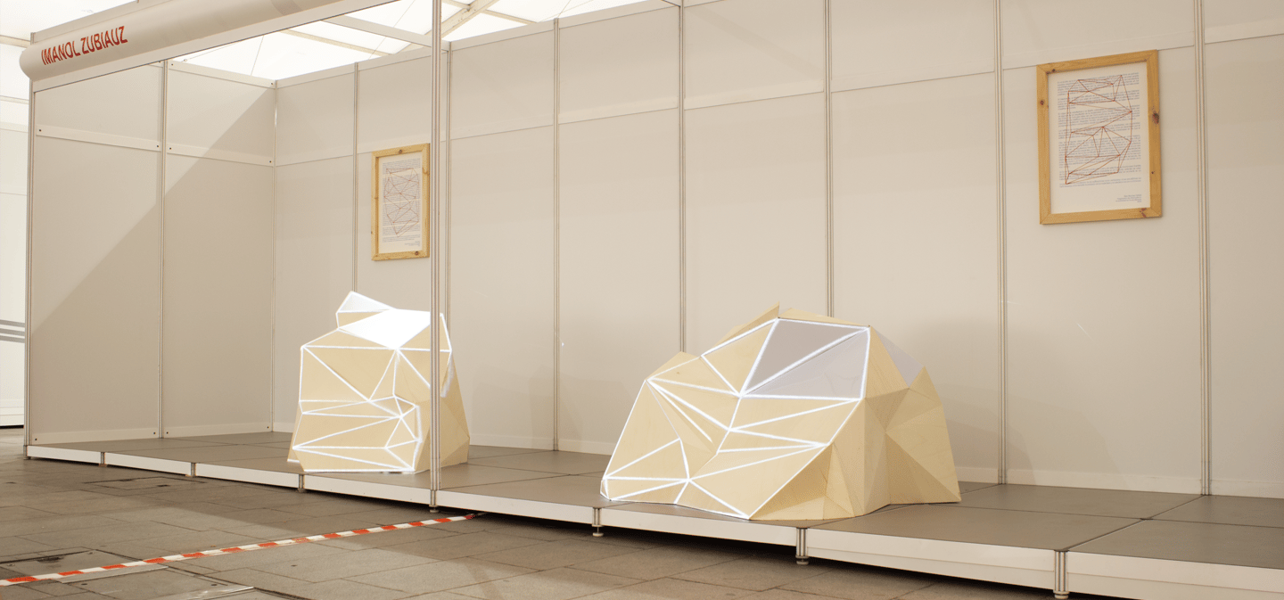 La producción de las piezas está basada en la utilización de la técnica grafomanía entópica. En su primigenia utilización, sirve para los surrealistas realizar dibujos a través de la unión de las impurezas de un papel en blanco. En este caso, la selección de los puntos se sustituye por la elección de conceptos de dos textos sobre la arquitectura minimalista y la luz. Una vez seleccionadas subjetivamente las palabras clave, han sido unidas a través de líneas rectas formando así diferentes triangulaciones. A esos dibujos geométricos abstractos posteriormente se les atribuye un valor volumétrico.