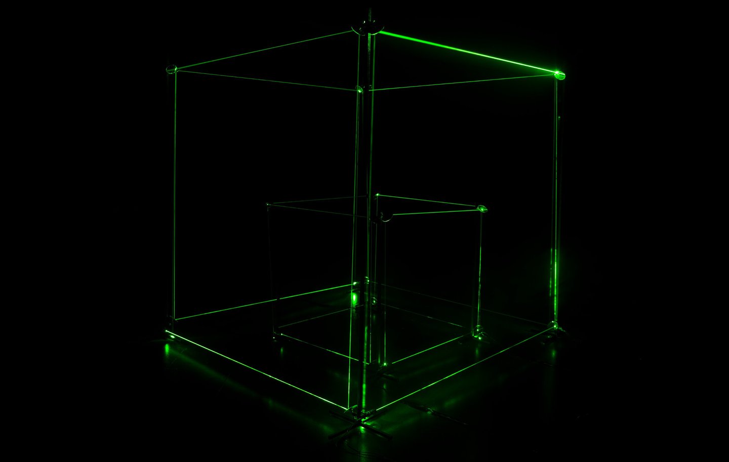 En referencia a ello, se cuestionan las fronteras entre la figura y el espacio que la rodea. En este sentido, un cuerpo o cosa tiene lugar si está envuelto por otro cuerpo o cosa, de forma que se pueden ver los objetos en el lugar, pero nunca el lugar en sí mismo. El espacio-lugar constituye así el mundo, en cuanto que lo produce, lo ordena y significa mediante signos de referencia. Sobre estas nociones, se crea un cubo perceptual dentro de otro cubo también visualmente apreciable. La intención es construir dos cubos que psicológicamente tengan un peso visual y ocupan un lugar concreto y estático en la sala, con el fin de discutir acerca de cual equivale a figura y cual a espacio o si ambos están vinculados con uno de los dos términos. Dado a que ambos cubos están compuestos únicamente por la delimitación de sus aristas por punteros láser, habitan en el espacio expositivo de una manera intangible pero visualmente apreciable. Con estas líneas de luz, se delimita un espacio a la vez que se crea una figura. Si se considera el cubo pequeño como la figura que habita en el espacio delimitado por el grande, ambas formas geométricas pertenecen a un contenedor mayor configurado por el espacio expositivo.