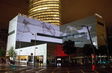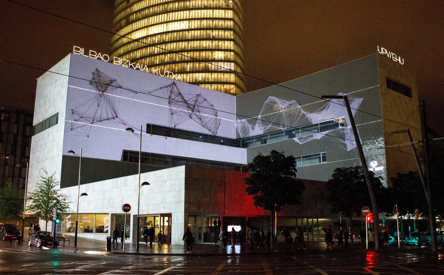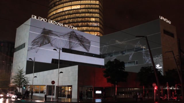Con su emisión, se genera una relación entre las dos paredes del edificio Bizkaia Aretoa (Bilbao). La animación deriva entre las formas geométricas provenientes las verticales y horizontales del edificio, hasta llegar formas irregulares y abstractas fundamentadas en la sinuosidad de las corrientes de la ría de Bilbao, muy cercana al edificio. El sonido también hace referencia a ello. La rigidez y la racionalidad matemática se deforma hasta convertirse en formas líquidas y onduladas.